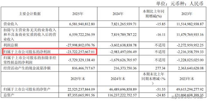 但營收還在,門店還在,經營活動現金流甚至在大幅改善,同比增長了277.34%,而歸母凈利潤上卻赫然寫著,虧損237億元。