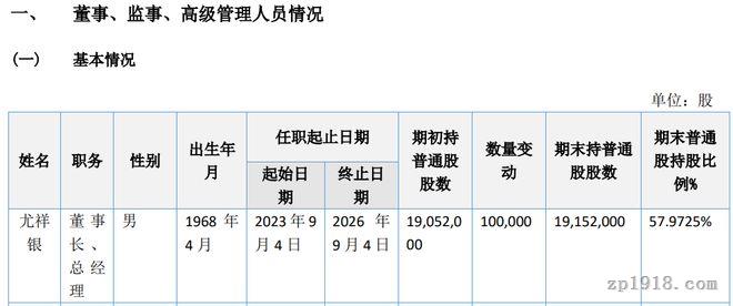麗洋新材此前剛剛于4月2日披露了2025年年報(bào),年報(bào)顯示,尤祥銀出生于1968年4月,持有公司股份19,152,000股,占公司已發(fā)行股份的近58%。